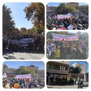 حماسه استکبارستیزی معارفیهای مطهری همدان در راهپیمایی با شکوه ۱۳ آبان